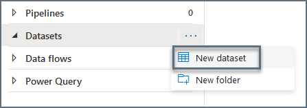 In the Factory Resources section, highlight the Datasets option.