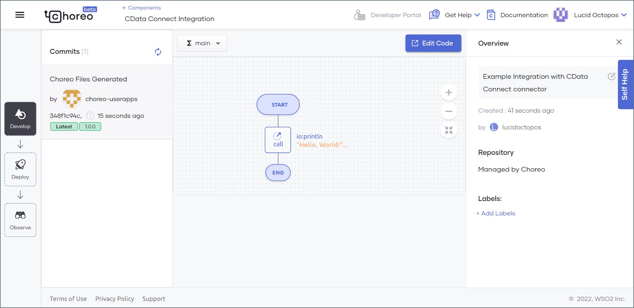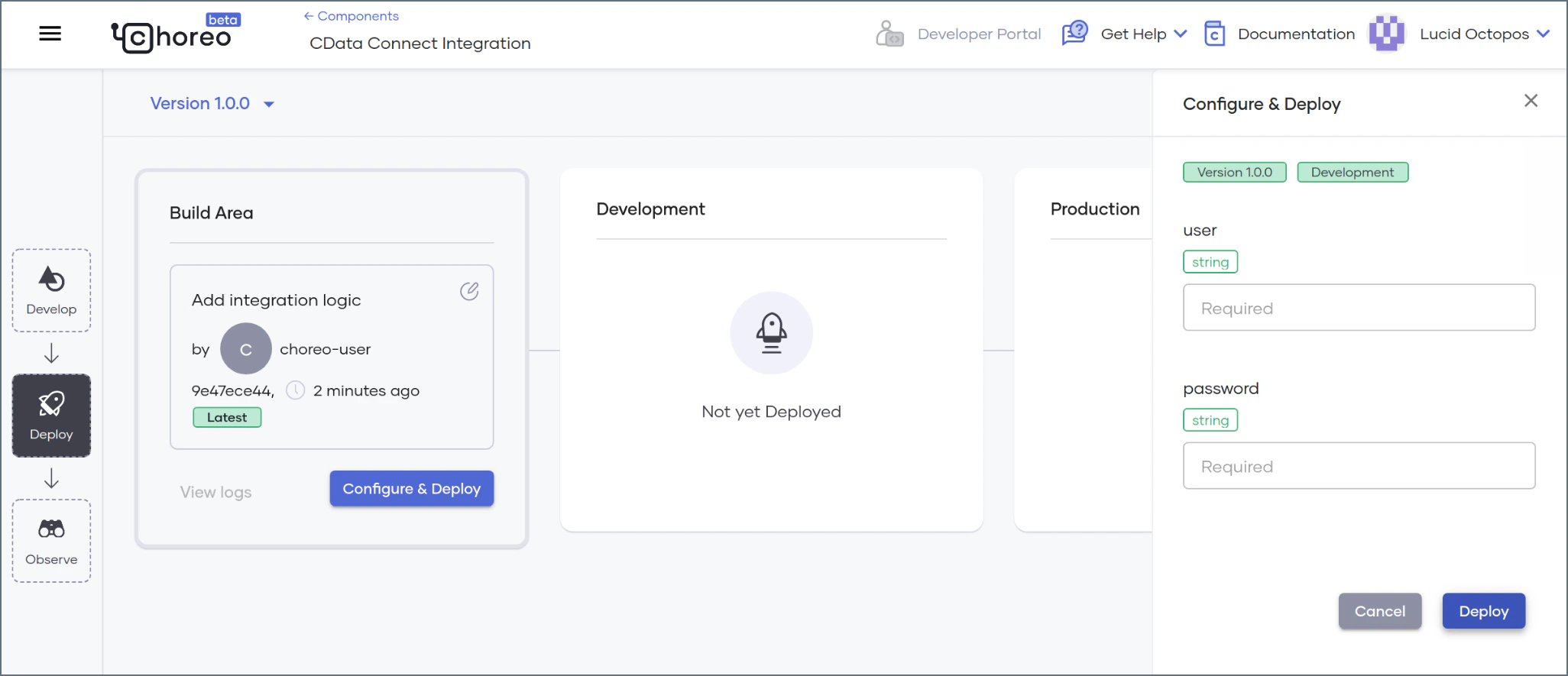 Sign in to the Choreo platform.
