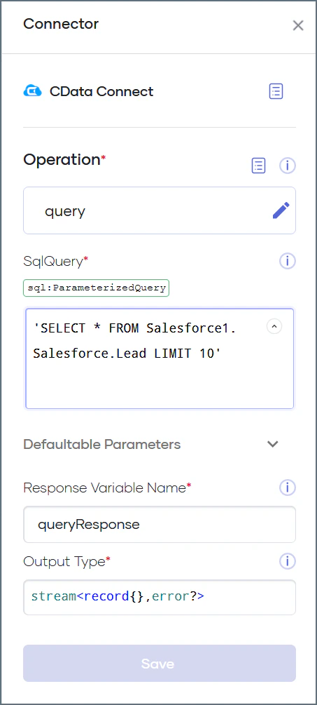 Follow these steps to configure a query action:Enter your query in the SqlQuery box.
