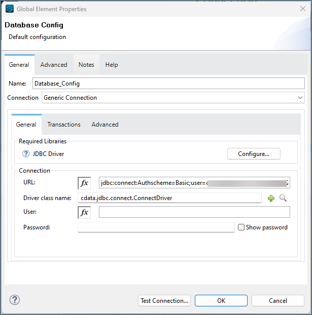 To establish a connection from MuleSoft to Connect AI through the JDBC driver, follow these steps.Download and install the Connect AI JDBC driver.a. Open the Integrations page of Connect AI.b. In the Dev Tools section, click JDBC.c. Download and run the setup file.d. When the installation is complete, the JAR file can be found in the installation directory.